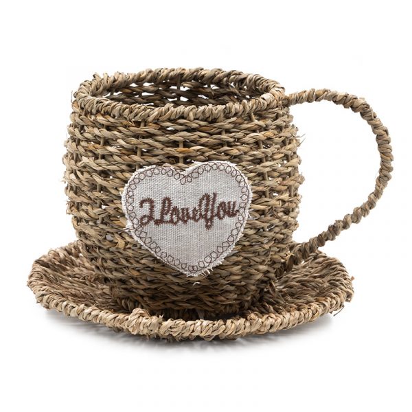17.23 € / 33.70 лв.Кашпа чаша бродирано сърце бежово 12/19/21 см.
