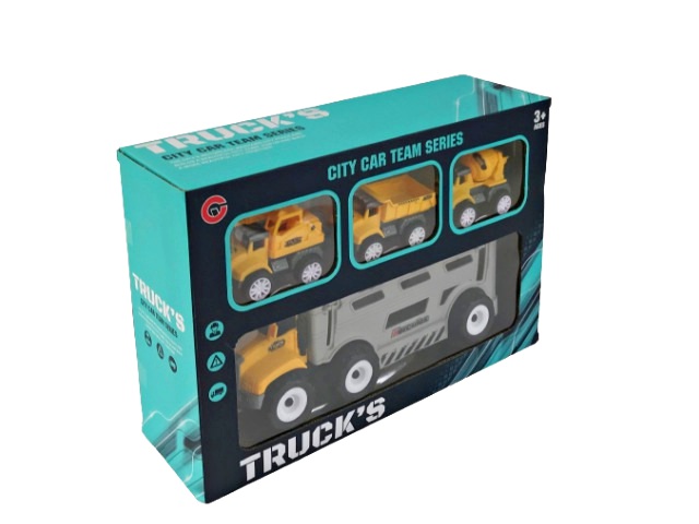 Камиончета от комплекта е с умалени размери и са изработени с внимание към детайлите.