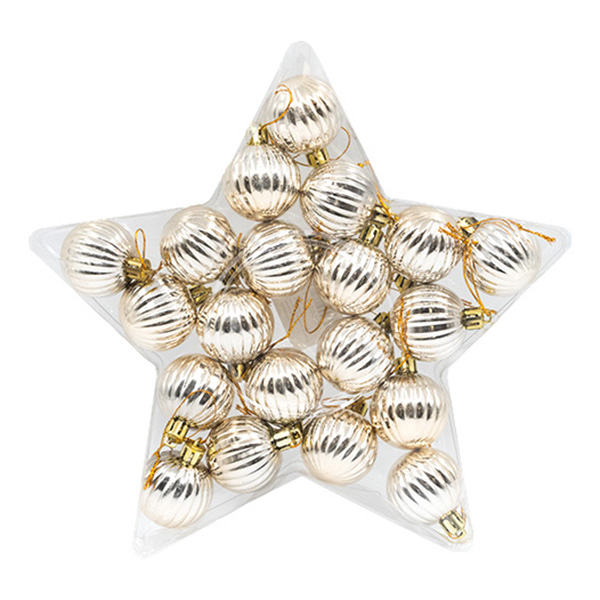 Коледни играчки за елха топки 4 см 20 бр в кутия звезда Шампанско