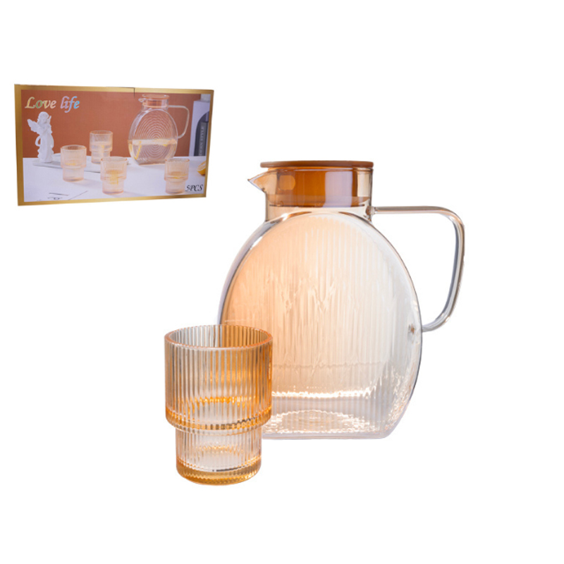 Комбинацията от стъклена кана с капак и съчетани чаши превръща обикновеното поднасяне на напитки в изискано преживяване – както за ежедневието, така и за специални поводи.