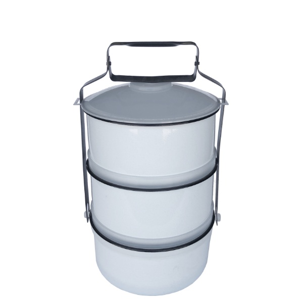Котелка е изработена от емайл, предлага 3 на брой кутии за пренасяне на храна.