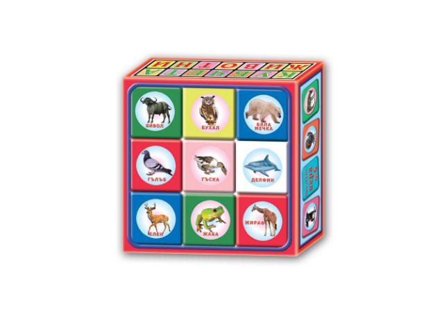 Всяко кубче има картинка на различно животно и се предлага в ярки и наситени цветове.