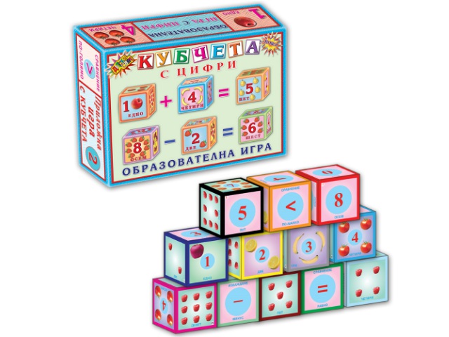 С кубчетата малчуганите ще се научат да познават цифрите и знаците, и да решават кратки аритметични уравнения.