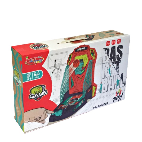 Комплекта съдържа едно пластмасово табло, пластмасова основа, две пластмасови прегради, кош, и три броя баскетболни топки и изтрелвач.