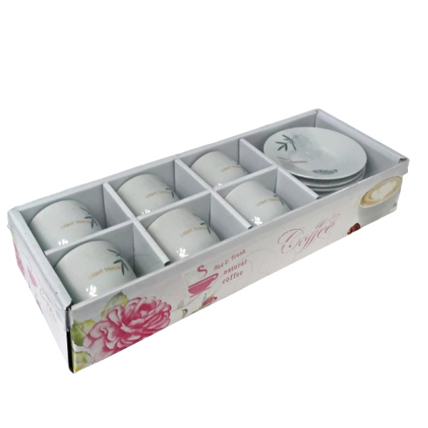 Комплектът се състои от 6 броя чаши с вместимост 140 мл и 6 броя подложни чинийки.