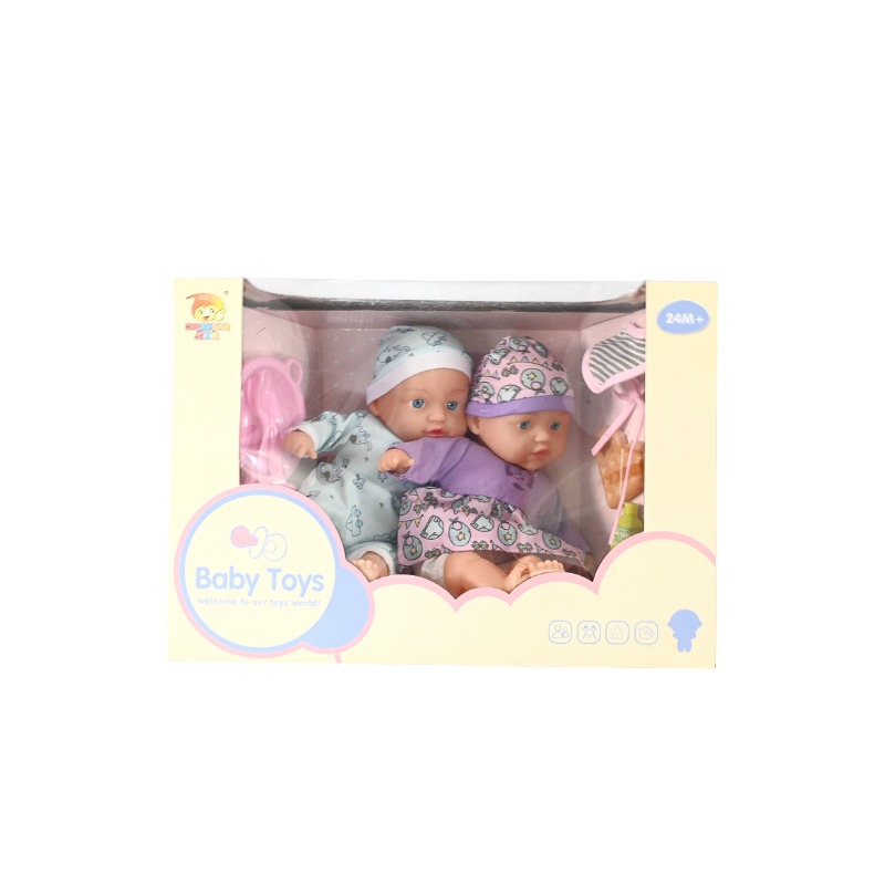 Бебета близнаци с аксесоари за хранене 30.5 см е играчка подходяща за момичета.