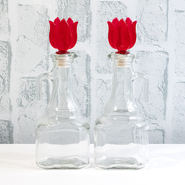 Бутилка за олио и оцет е изработена от стъкло и пластмаса.