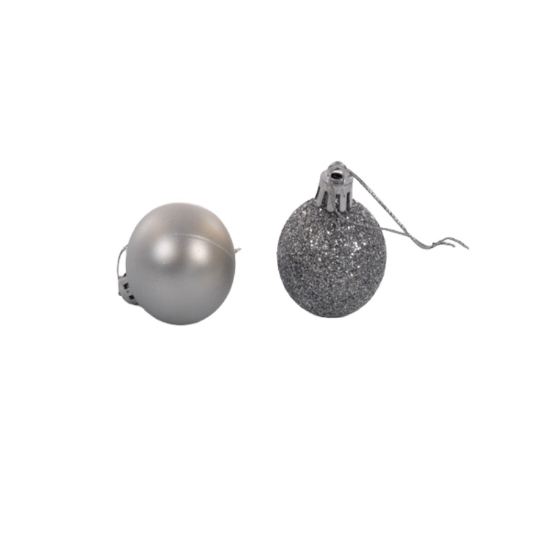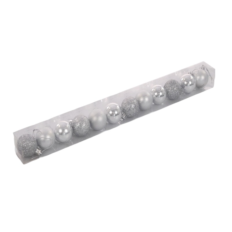 Коледни играчки за елха топки 4 см 12 броя в тубус сребърно са изработени от твърда и устойчива пластмаса.