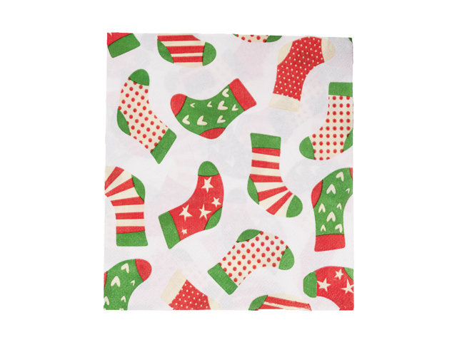 Коледни салфетки 33/33 см 20 броя коледен чорап са изработени от преработена дървесина, съобразно всички установени стандарти за качество и безопасност.