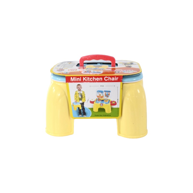Комплектът е едновременно кухня за игра и столче за сядане, което го прави практичен и функционален избор за всяко дете.