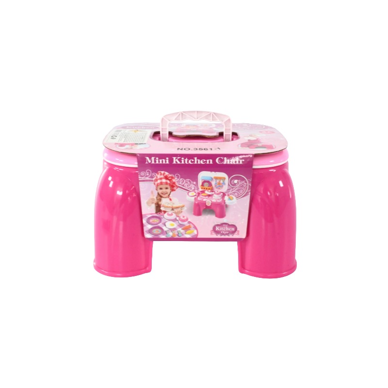 Комплектът е едновременно кухня за игра и столче за сядане, което го прави практичен и функционален избор за всяко дете.