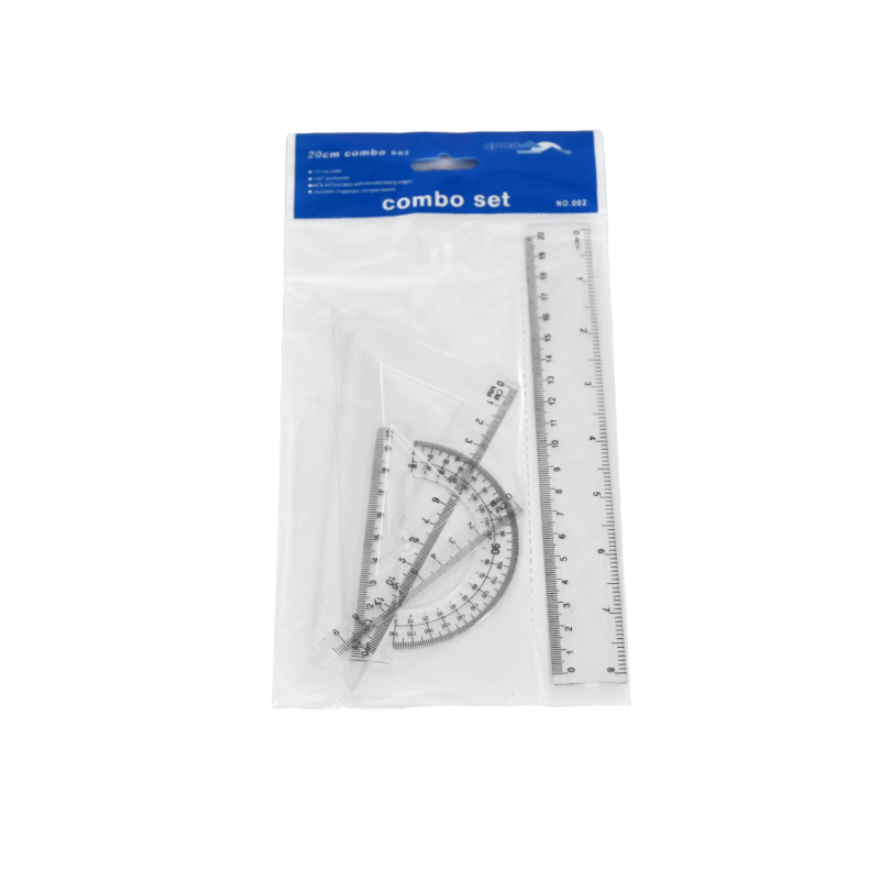 Комплект линия 20 см, триъгълник 2 броя и транспортир