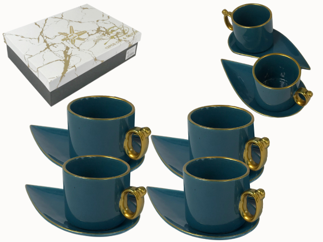 Сервизът съдържа и 6 на брой чинийки с интересна форма и дизайн, който допълва чашките!