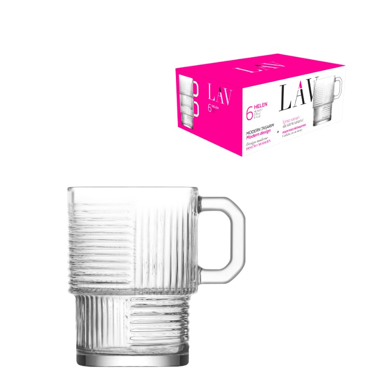 Чаша с дръжка HELEN 0.270 литра 6 броя е изработена от стъкло, съобразно установените стандарти за качество.