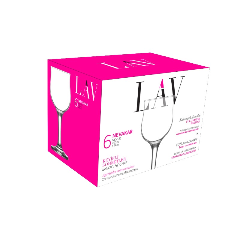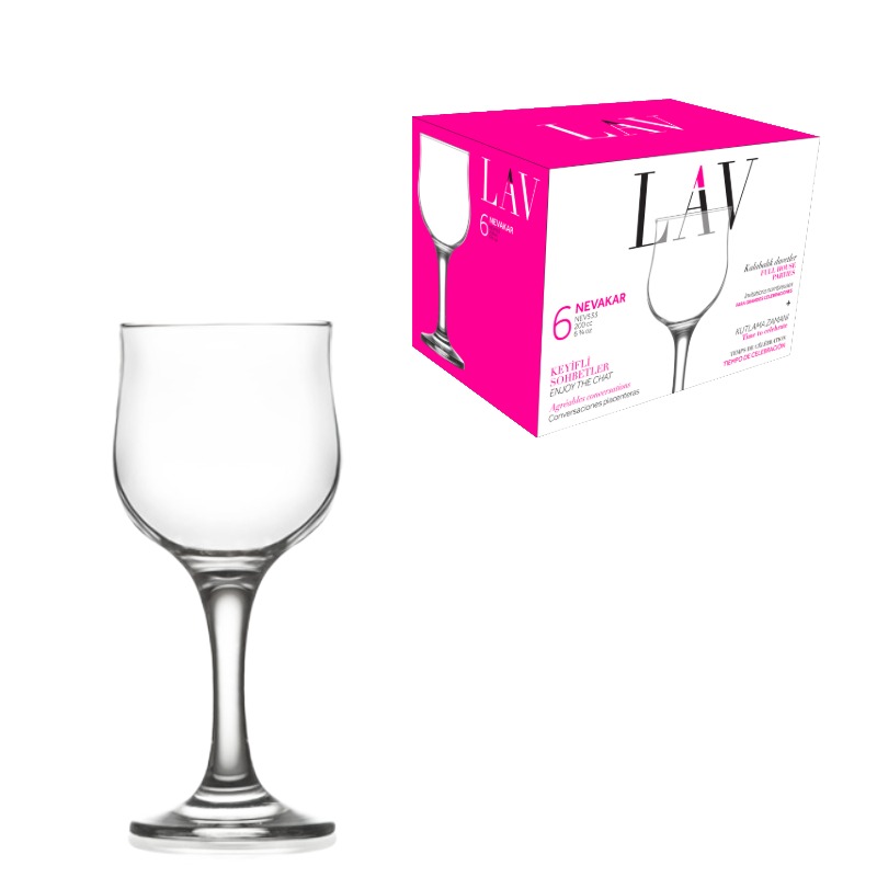 Чаша NEVAKAR за бяло вино 0.200 литра 6 броя е изработена от стъкло, съобразно установените стандарти за качество.