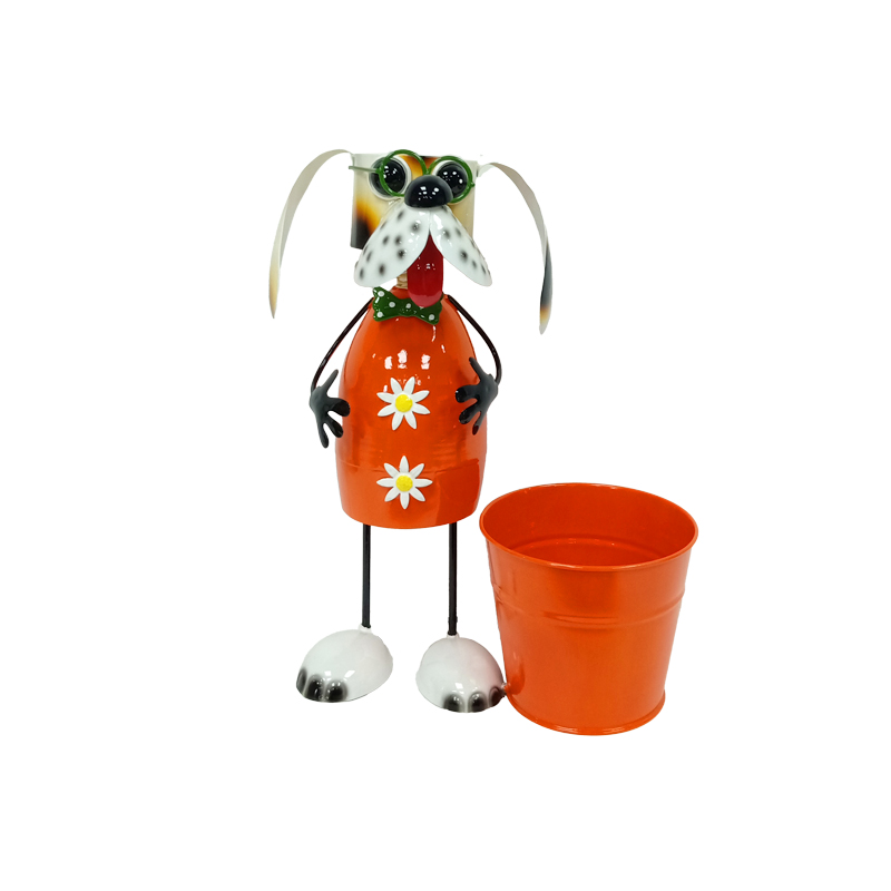 Тази декоративна градинска фигура съчетава практичност и артистичен дизайн в едно. Металното куче с вградена кашпа е ефектен акцент, който внася цвят, настроение и индивидуалност във всяко външно или вътрешно пространство. Оранжевият цвят придава жизненост и прави фигурата истински привличащ погледа детайл.