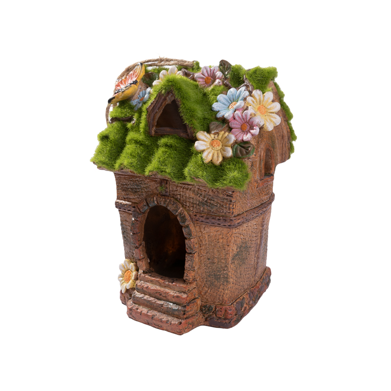 Декоративна соларна градинска фигура – Къщичка с цветя