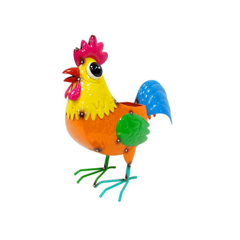 Тази декоративна градинска фигура представя метален петел с вградена кашпа, който внася настроение, цвят и характер във всяко външно пространство. Силуетът на петела е изразителен и динамичен, а комбинацията от жълто и оранжево създава слънчево и жизнено излъчване, напомнящо за селски уют и пролетна свежест.