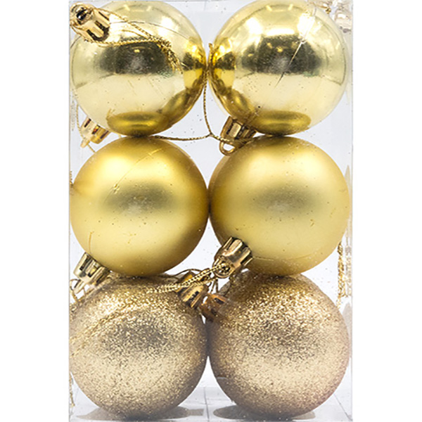 Коледни играчки за елха топки 5 см 12 бр в кутия Златно