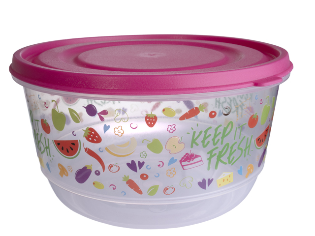 Декоративният дизайн придава свеж акцент на кухнята, а кръглата форма позволява лесно подреждане и удобно използване в ежедневието. Подходящ е както за съхранение в хладилник, така и за пренасяне на храна.