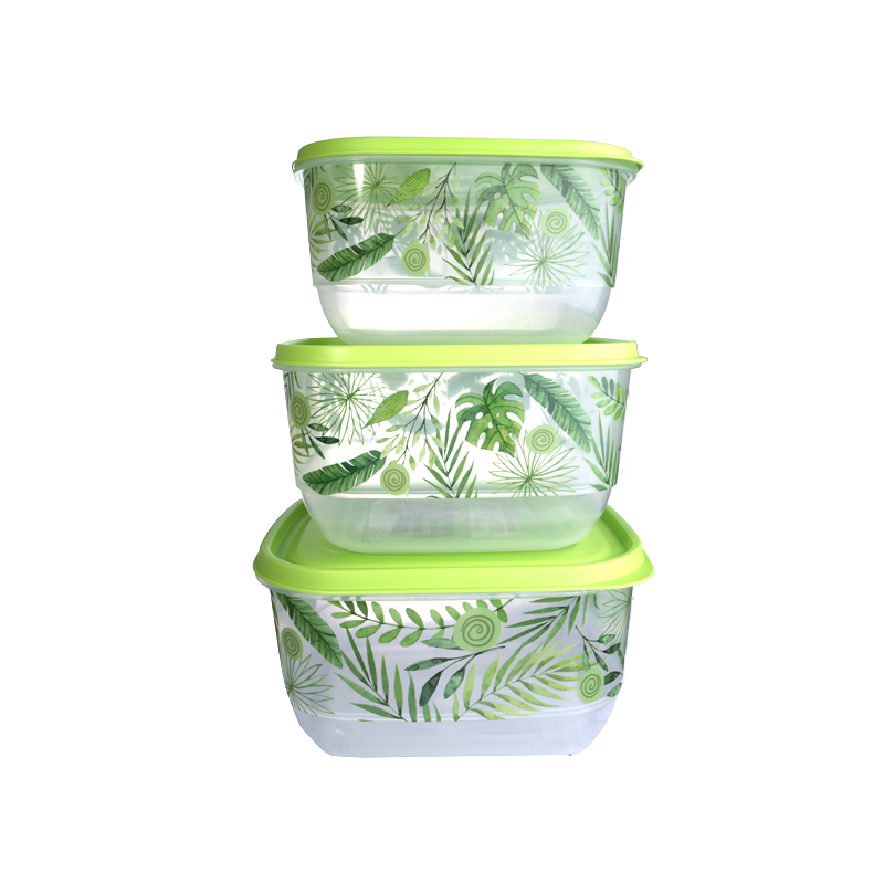 Контейнер за съхранение квадрат с декор 3 броя са произведени от висококачествена и безвредна пластмаса.