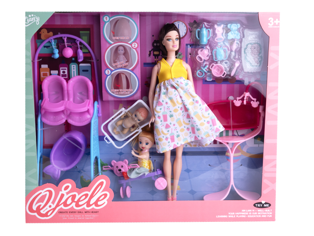 Комплект: кукла + допълнителни елементи (2 бебета и различни аксесоари)