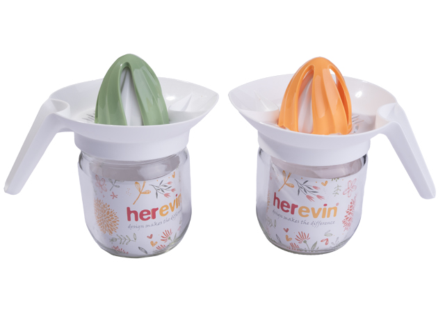 Продуктът има стъклено бурканче, в което се събира изстискания от цитруса сок.