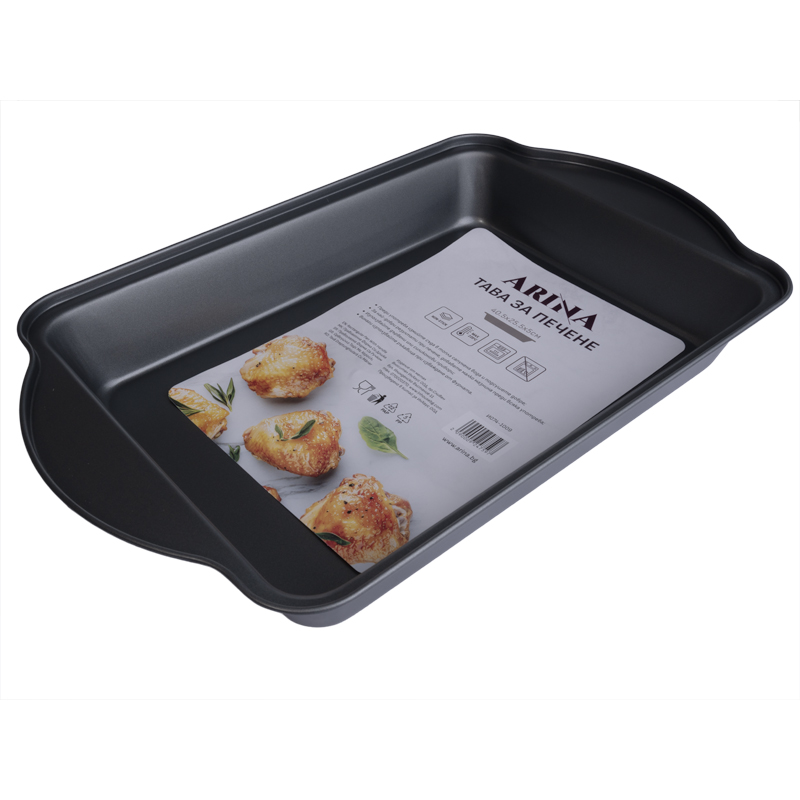 Практична и удобна правоъгълна тава за печене с дръжки, предназначена за приготвяне на разнообразни сладки и солени ястия у дома. Тя осигурява достатъчно пространство за по-големи порции, което я прави идеална за семейни вечери, събирания с приятели и празнични поводи.